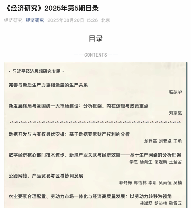我校经济学院博士研究生在《经济研究》发表学术论文